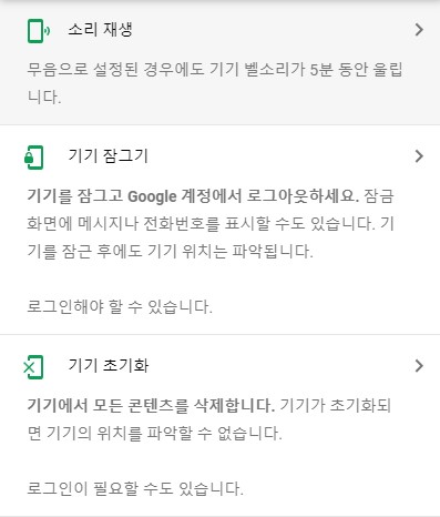 기기를 잠근 후 위치가 파악된 곳으로 향하여 둘러봐서 찾을 수 있으면 베스트고 보이지 않는다면 소리재생을 실행하여 어디 있는지 찾을 수 있을 것이다. 하지만 이렇게 실행하기 위해서도 본인포함 두 명이나 세 명이서 움직여야 한다. 본인 구글 계정이 로그인되어 있는 컴퓨터 앞에 한 명, 현장으로 향해 연락이 가능한 폰을 가지고 있는 사람이 또 한 명 필요하다. 다른 폰으로 본인 구글 계정으로 로그인해서 하면 되지 않을까 생각할 수도 있지만 전화번호 인증 때문에 할 수가 없을 것이다. 휴대폰의 위치가 바뀌는 것을 알려주거나 소리 재생기능을 실시간으로 실행해 줄 사람이 컴퓨터 앞에 앉아 있어야 한다.